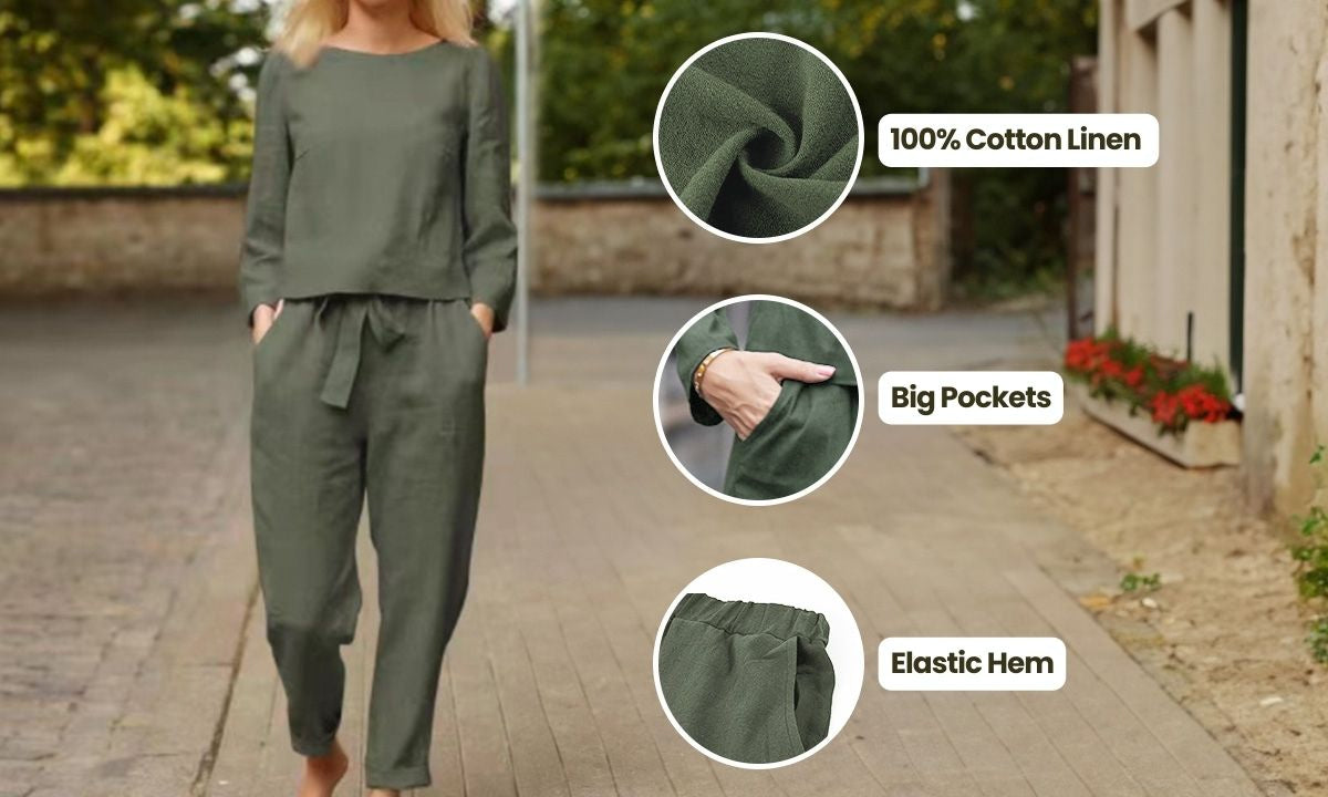 Yes, the cotton and linen blend fabric is breathable and provides excellent moisture-wicking properties, making it ideal for warmer weather.
