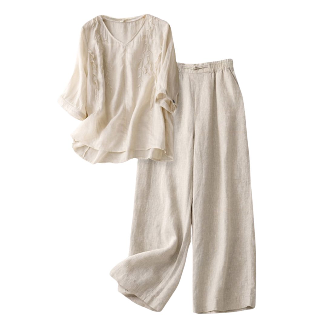 Yes, both the top and pants are engineered to maintain their elegant fit and drape. The cotton-linen blend actually improves with gentle washing, be coming softer while retaining the sophisticated silhouette of each piece.