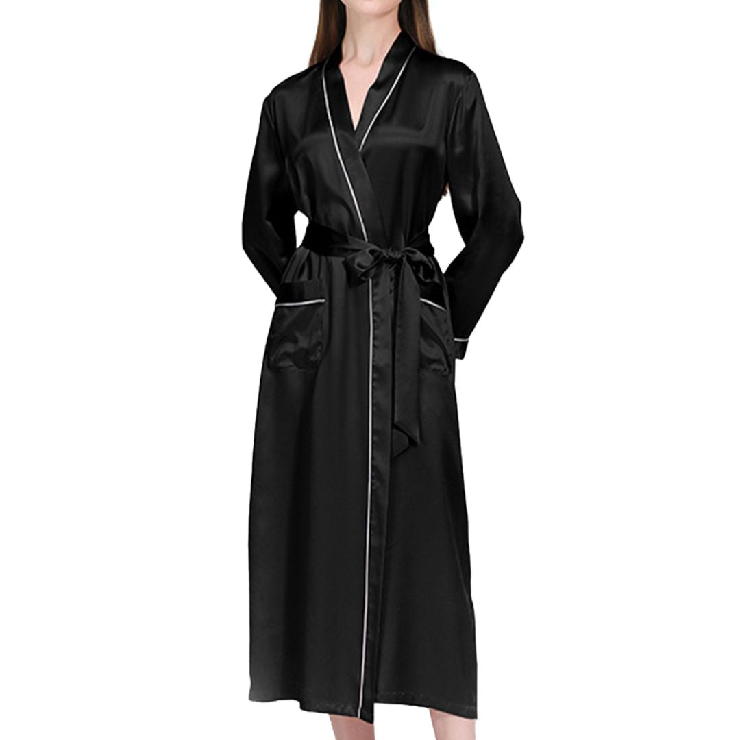 It’s made from luxurious 100% mulberry silk, offering a smooth, breathable feel with an adjustable belt for a chic, versatile fit.