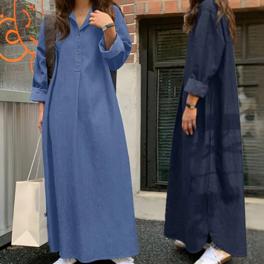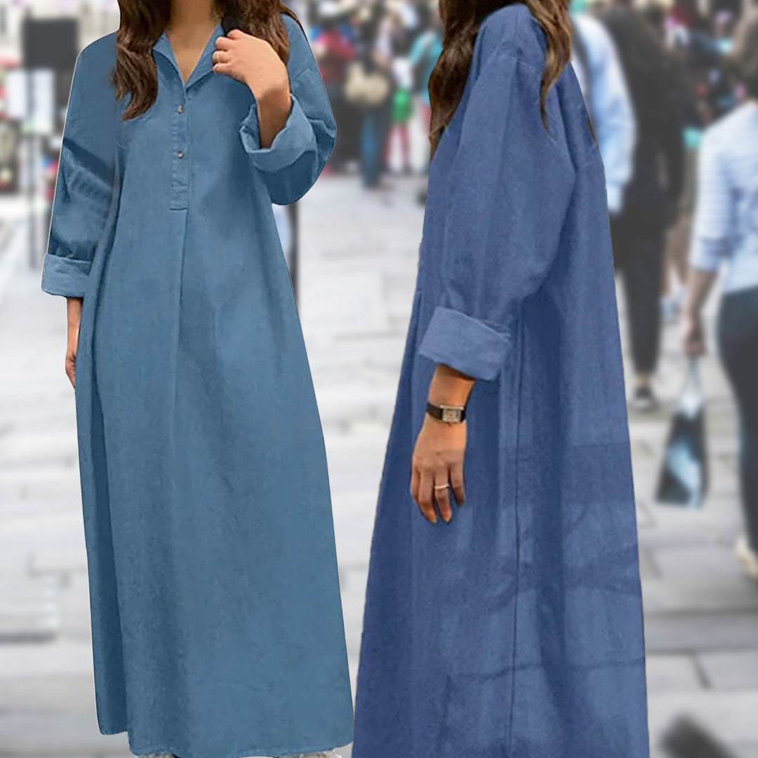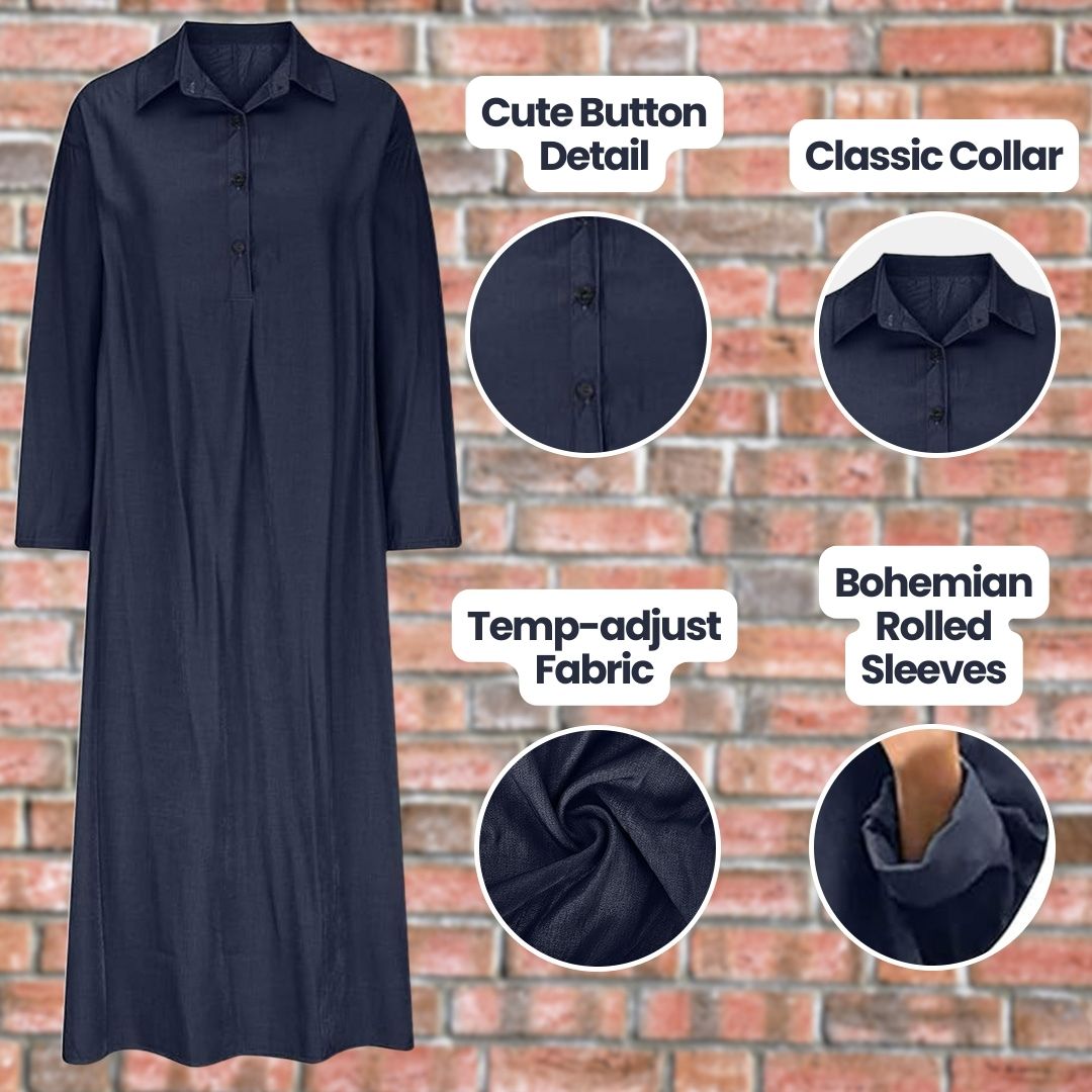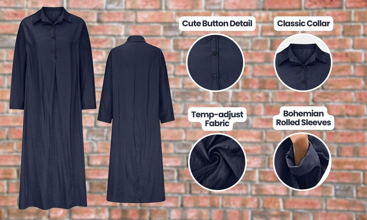 - Age-appropriate Cut: Stay in fashion but modest with a full length, shallow V-neck, and wrist-length sleeves.