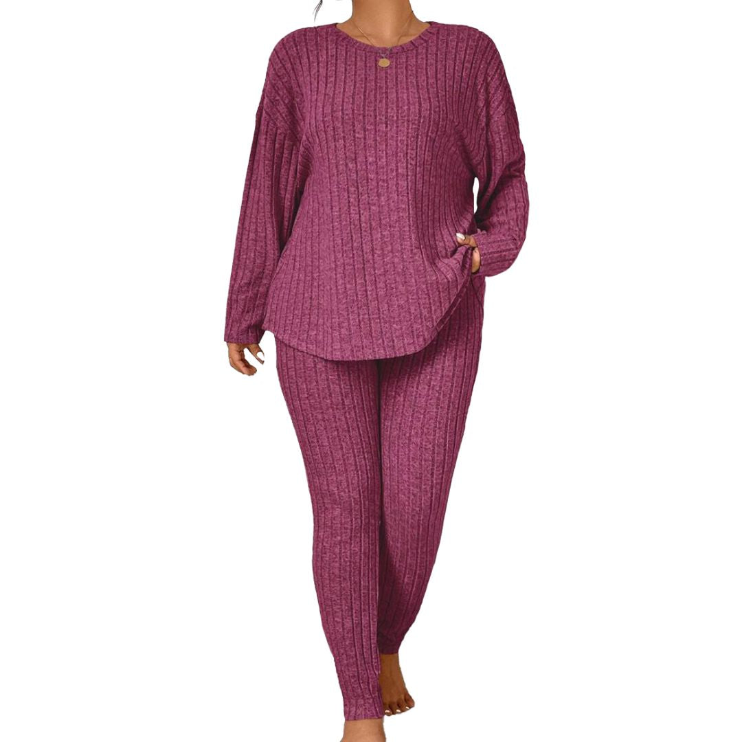 Style Note: Soft and stretchy, this two-piece set offers all-day comfort with a flattering drape. The oversized cut embraces your shape with ease, while the rich colors and cozy knit make it perfect for everyday wear, from slow mornings to special outings.