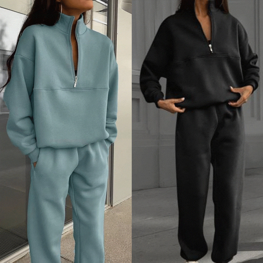 Design Elements: High collar, Deep zipper, Long sleeves, Two pockets