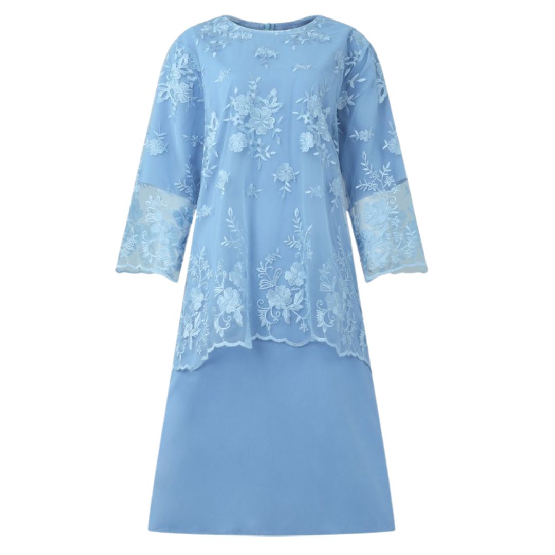 Material: 100% Polyester - smooth, flowing fabric with delicate lace embroidery that maintains its elegant appearance wash after wash.