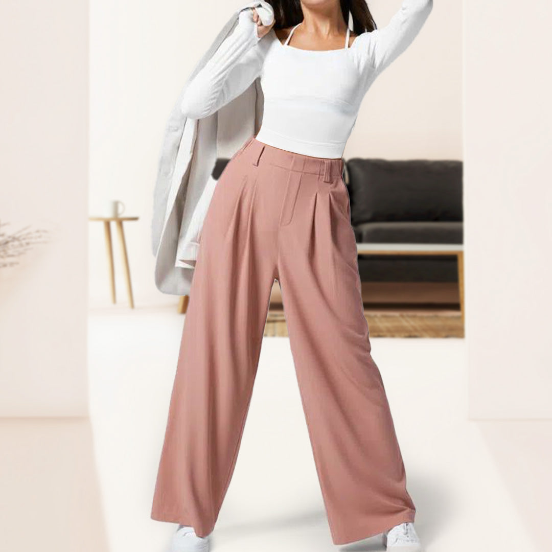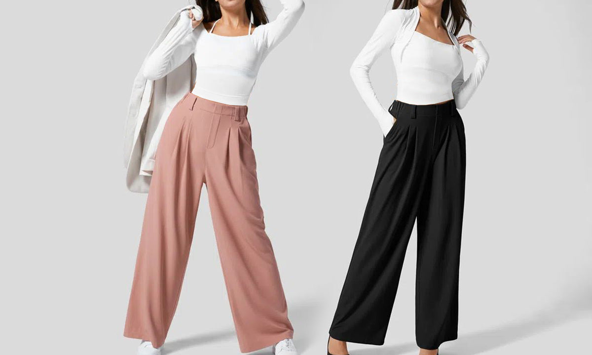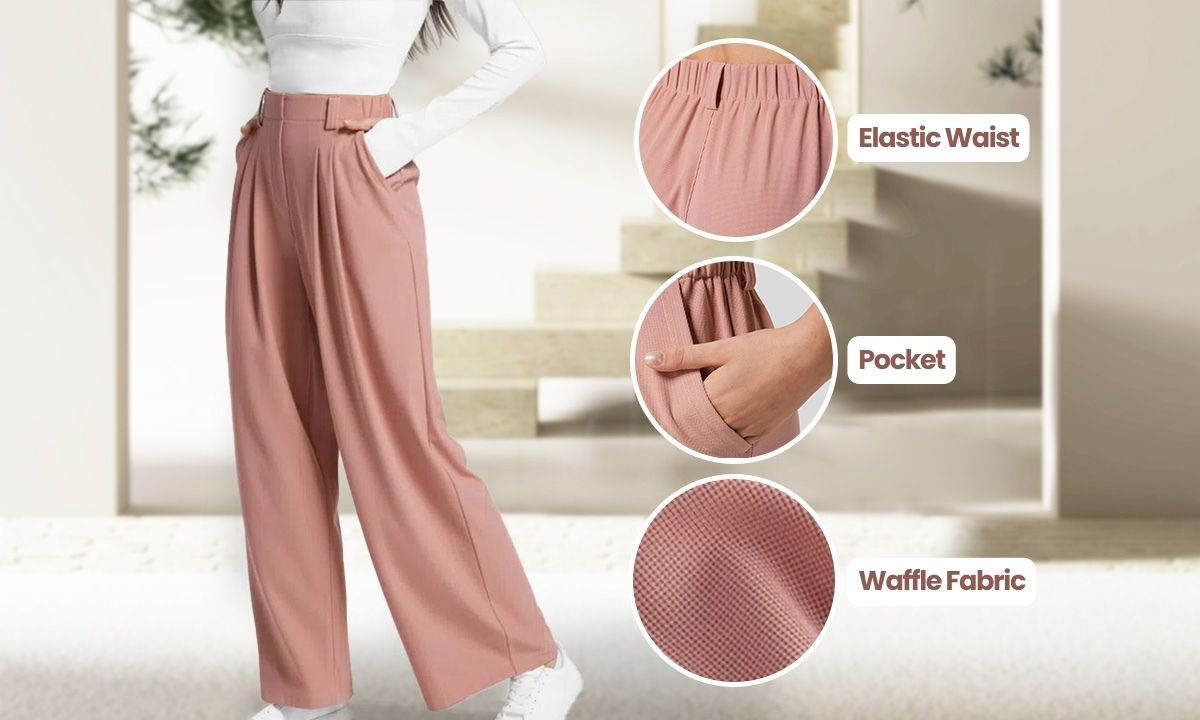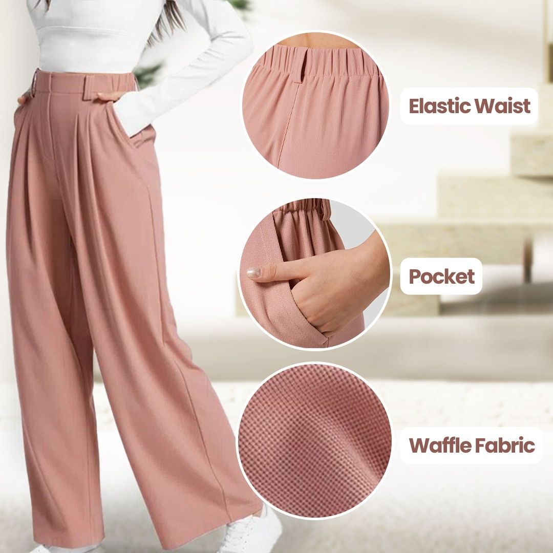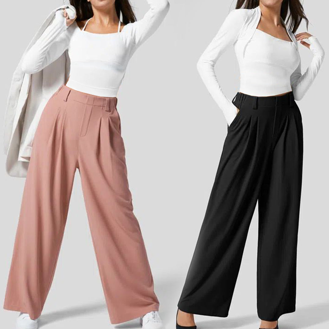 - Longer Legs: The sleek, wide legs and high waist cut of the pants elongate your legs so you appear taller and slimmer.