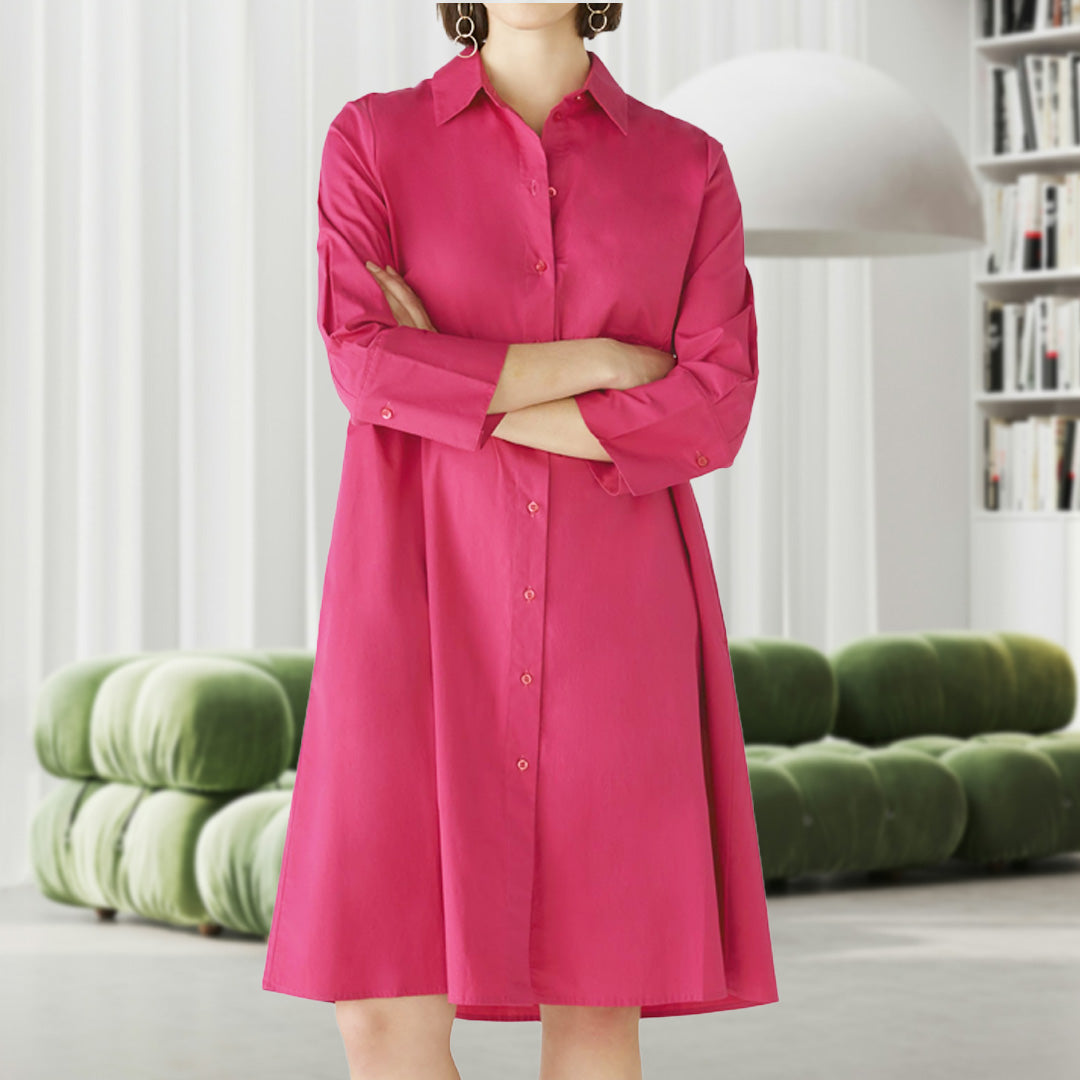 The shirt-dress is ideal for casual outings and semi-formal events when you accessorize with dressier shoes and jewelry.