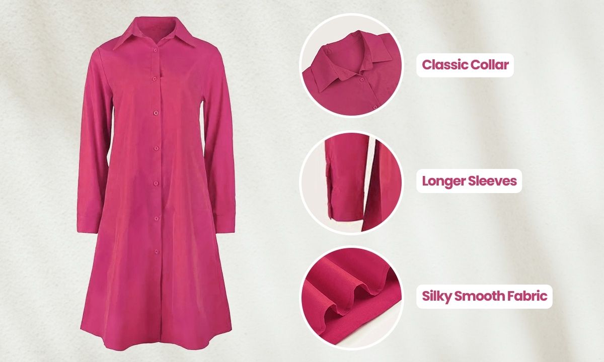 - Easy Styling: Inspired by the trendy long shirt look and one solid color, styling the dress is a cinch with just some jewelry and a nice pair of shoes. No fuss about it.