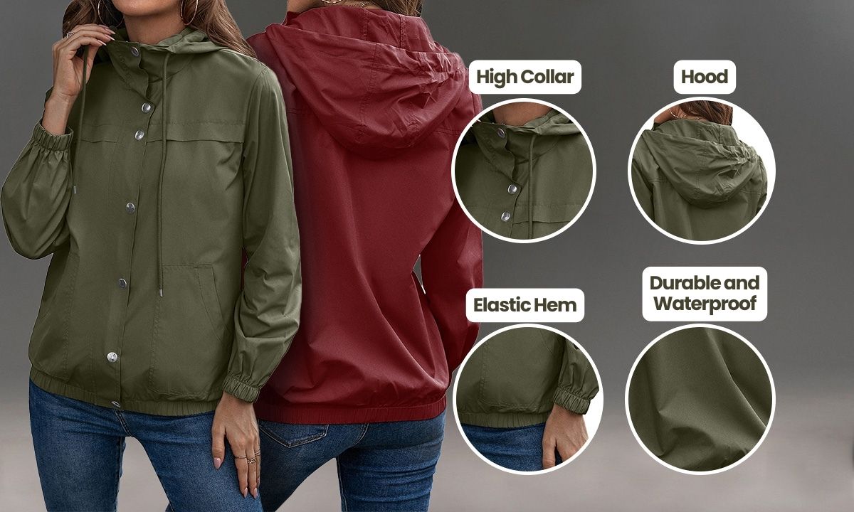 - Cute Utility: This jacket has a purpose: to protect you from the rain and wind. However, it doesn’t leave your style dry. Stay cute and feminine even while dodging the elements.