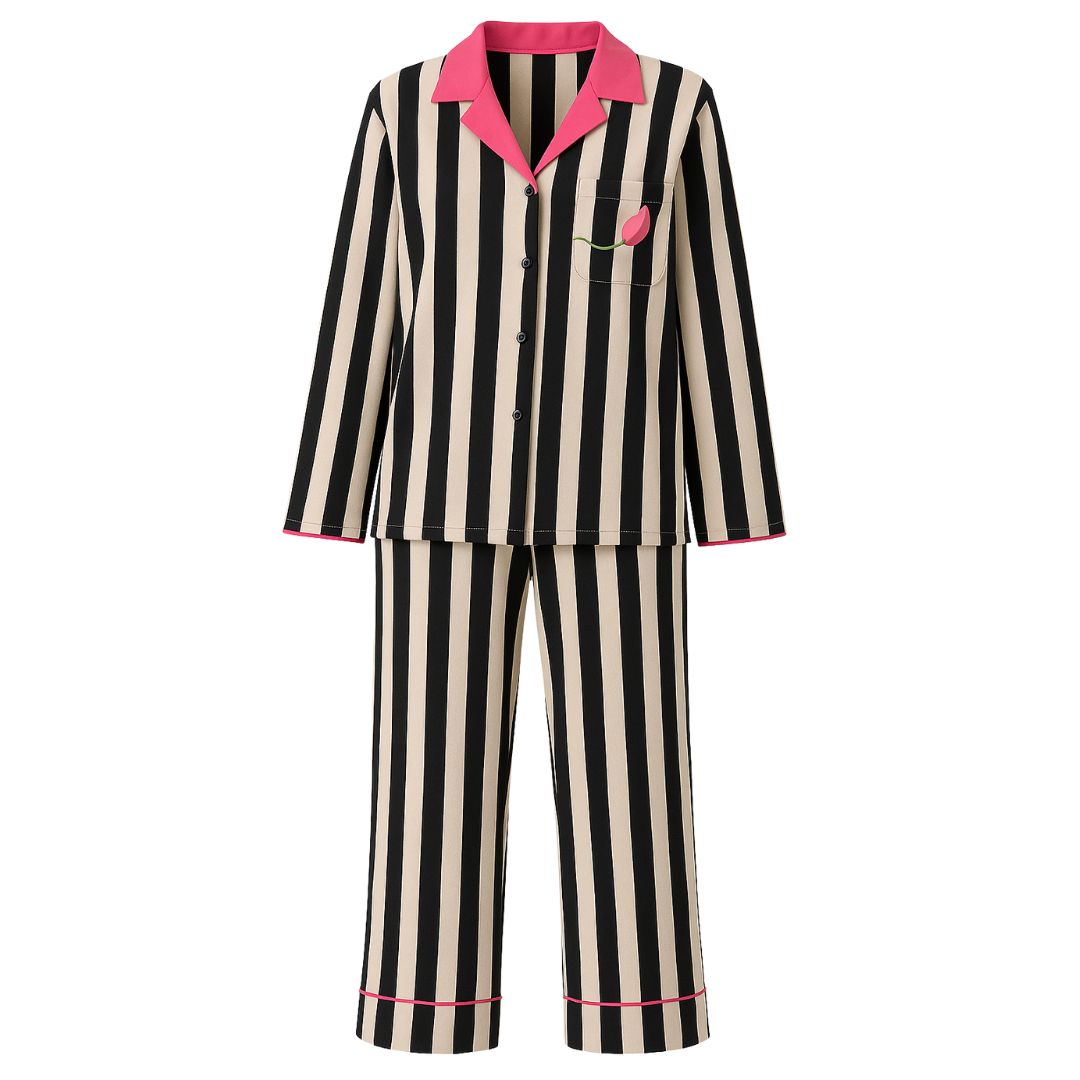 Style Note: Classic striped pajama set with timeless appeal. Perfect for sleeping or lounging. Wear buttoned up or slightly open, with slippers or barefoot for ultimate comfort.