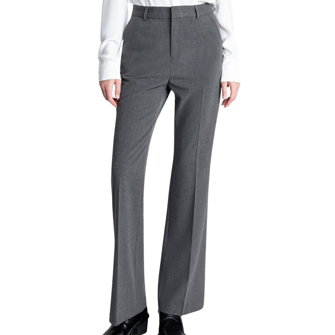 These feature a modern high-rise waist that sits comfortably at your natural waistline, creating a flattering silhouette and professional appearance when tucked or untucked.