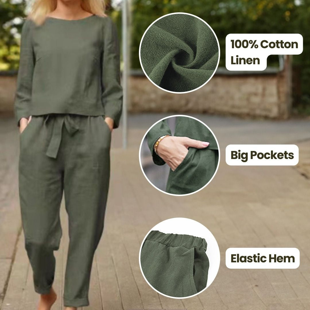 Yes, the cotton and linen blend fabric is breathable and provides excellent moisture-wicking properties, making it ideal for warmer weather.