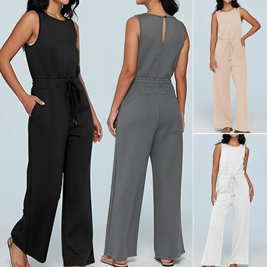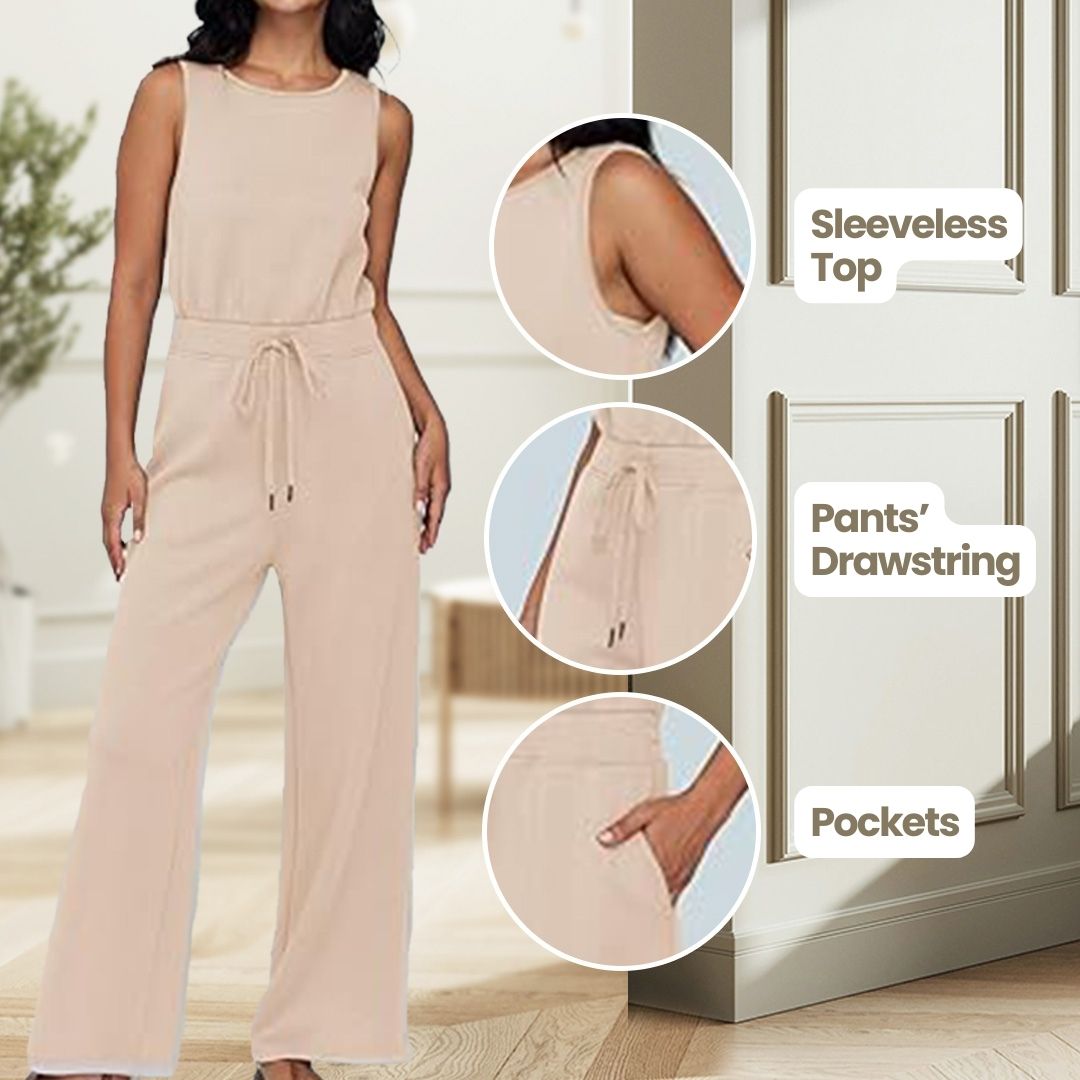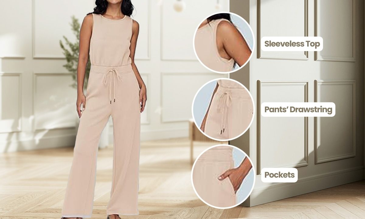Design Elements: Pockets, Wide legs, Drawstring waist, Sleeveless top