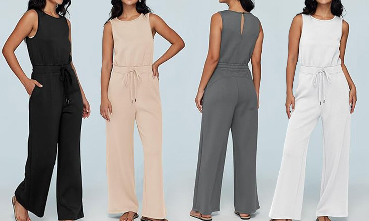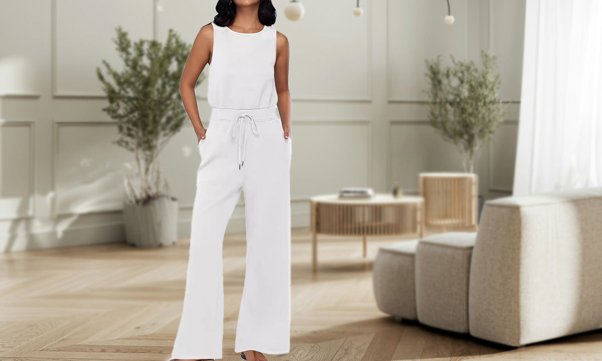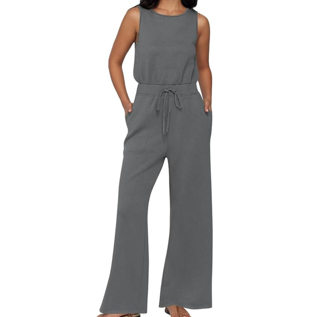 The jumpsuit is ideal for lounging, travel, and casual outings.