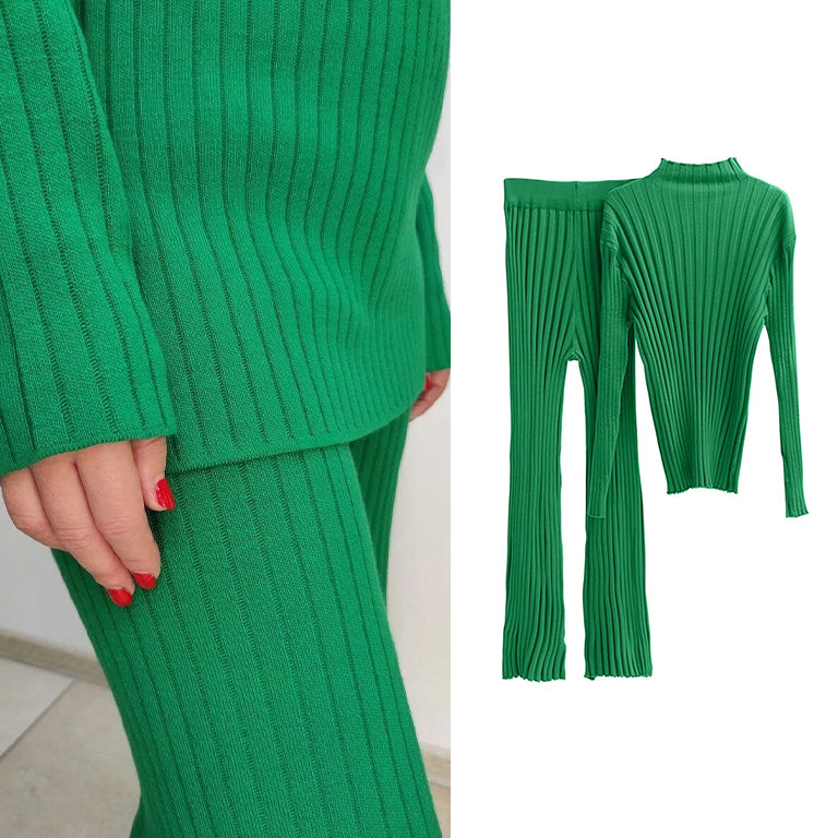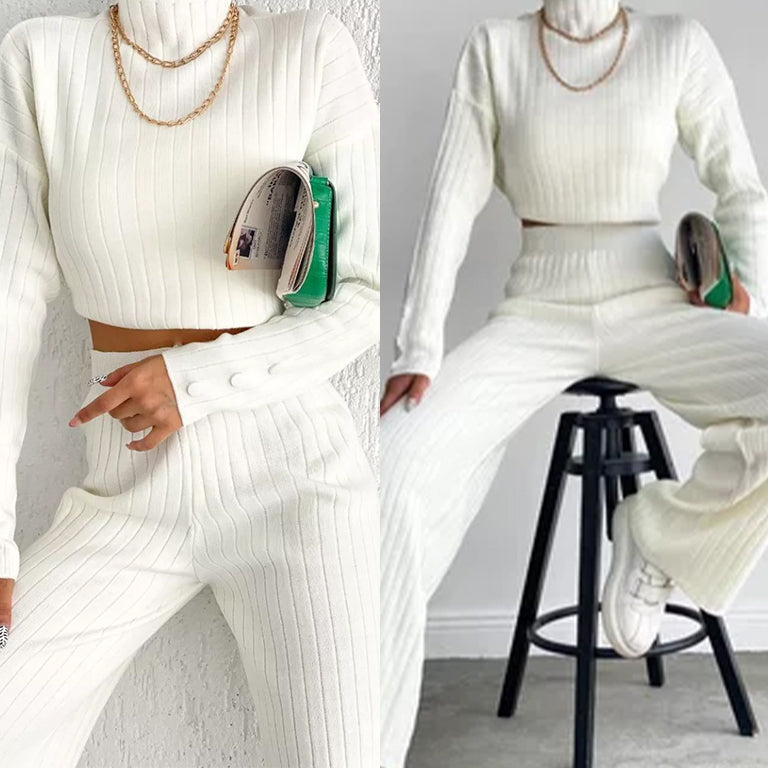 Our Timeless Striped Two-Piece Knitwear Set is made with high-quality polyester, providing you with comfort that lasts all day.