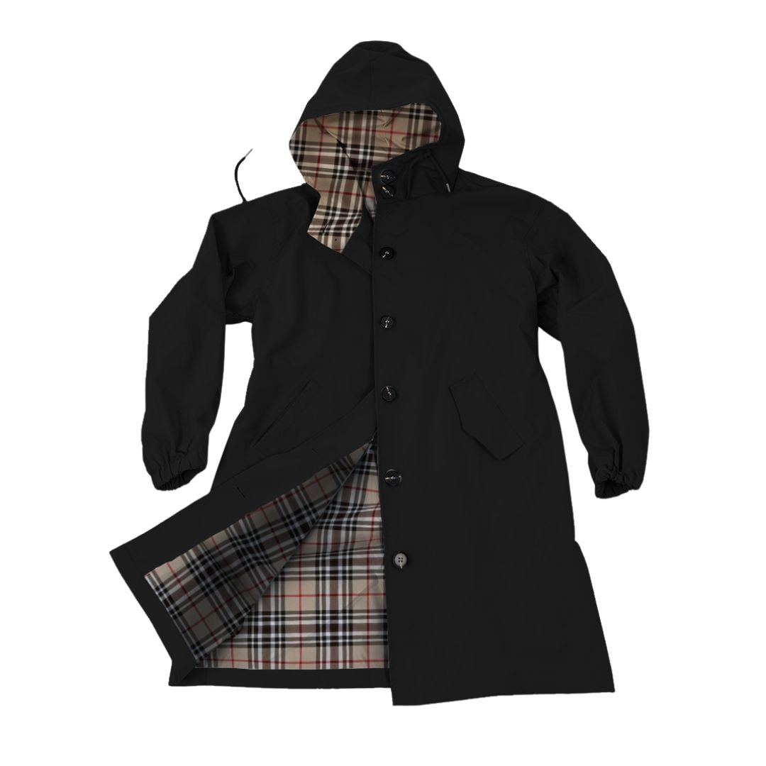 - Classic beige plaid lining adds a touch of sophistication