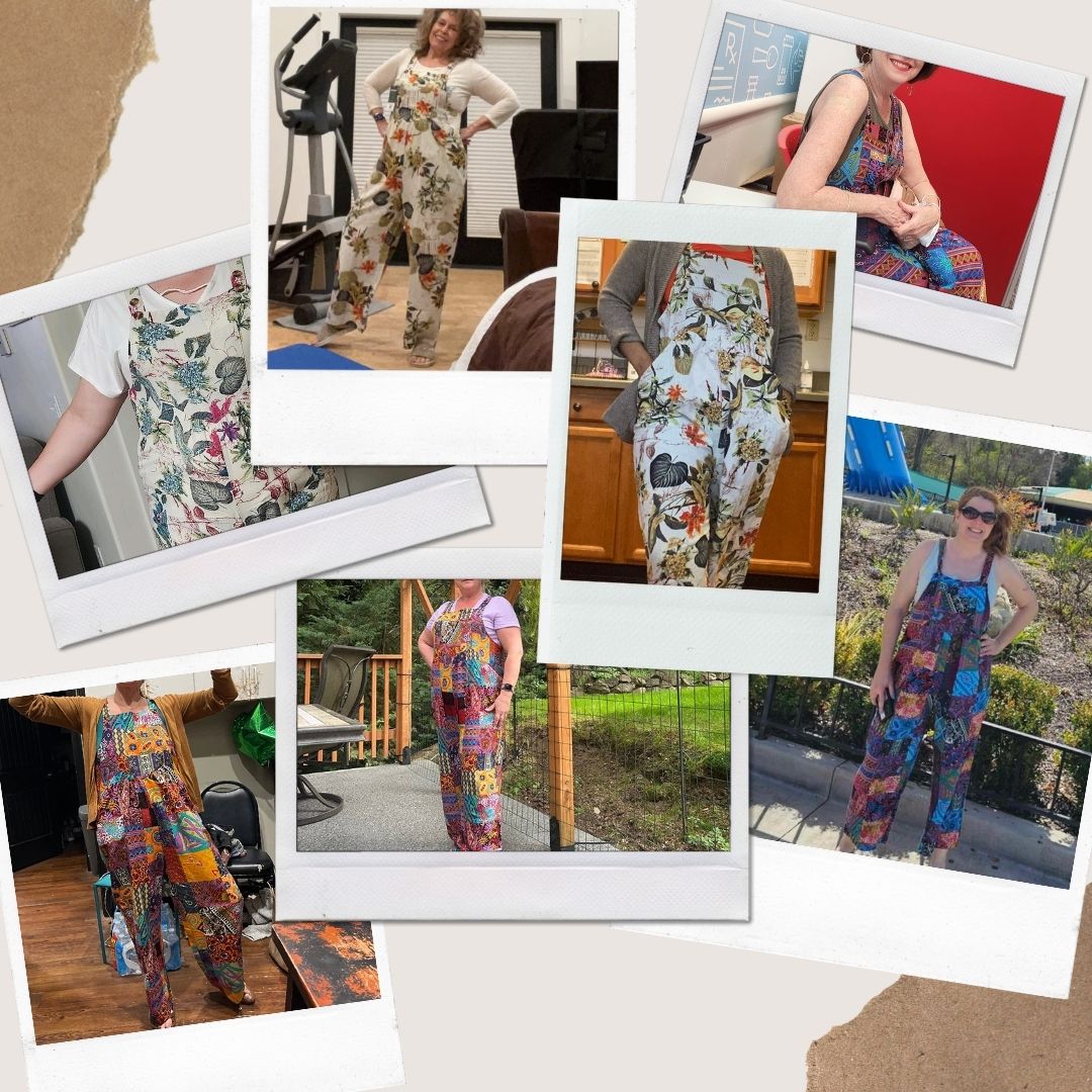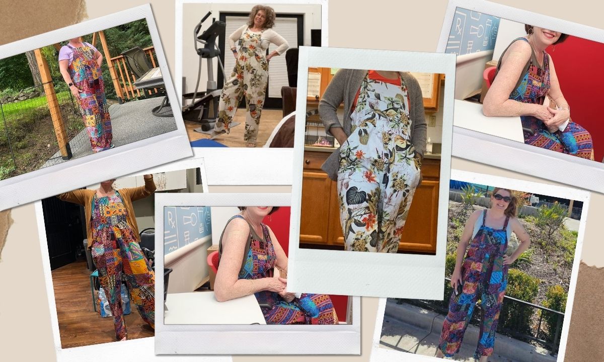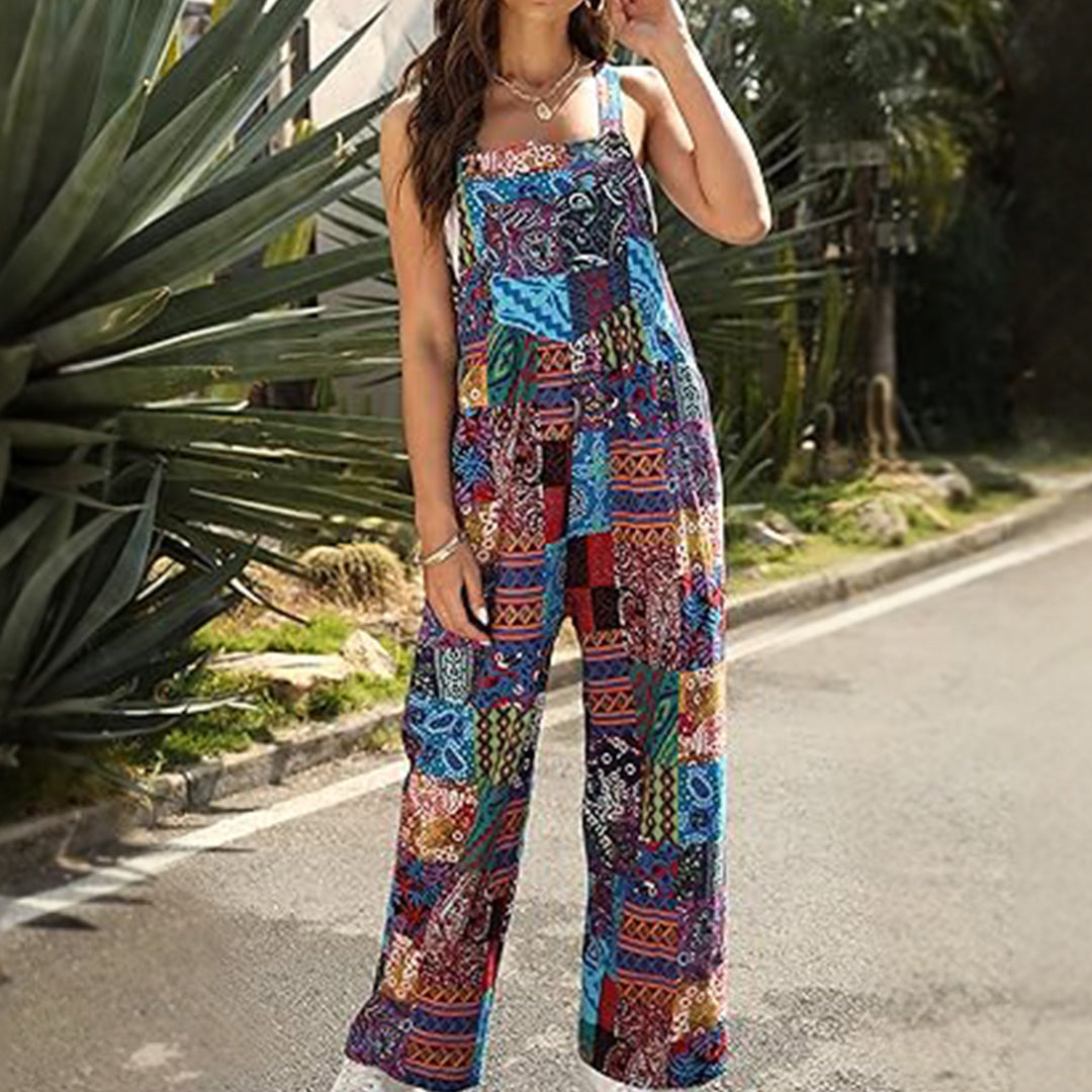 Design Elements: Square neck, Button detail on straps, Two pockets, Wide-legged