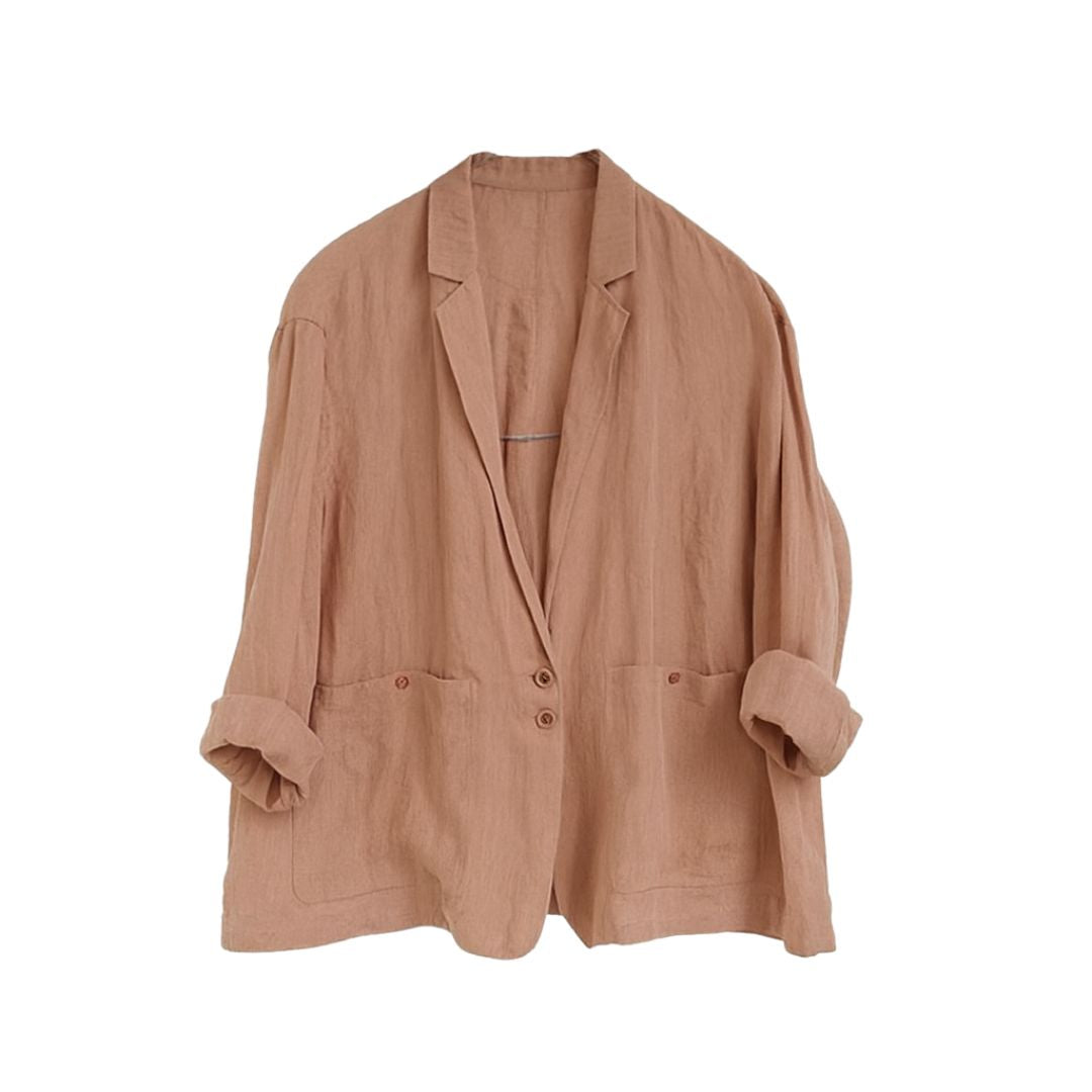 Style Note: Relaxed-fit linen shirt in a flattering peach tone. Perfect for layering over tanks and tees, or wearing open as a light jacket. Pair with white pants for classic elegance or denim for casual sophistication.