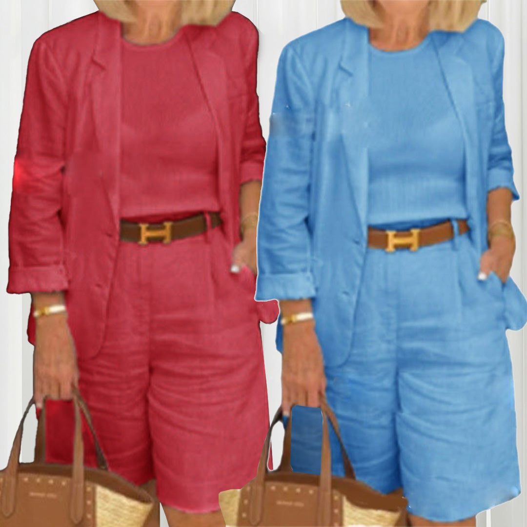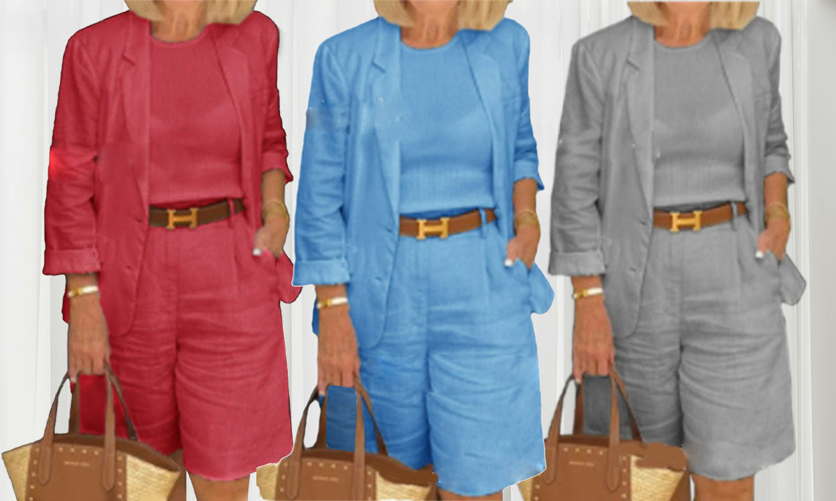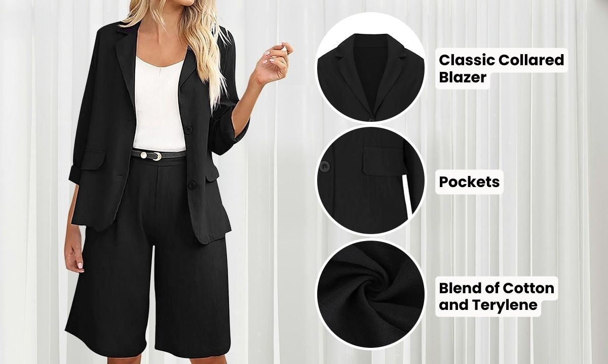 - Dignified but not Uptight: The classic collared blazer and knee-length, high-waisted shorts are classy and put-together, but the soft and natural fabric is friendly and approachable.